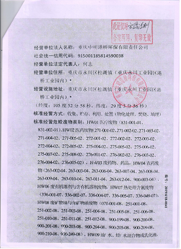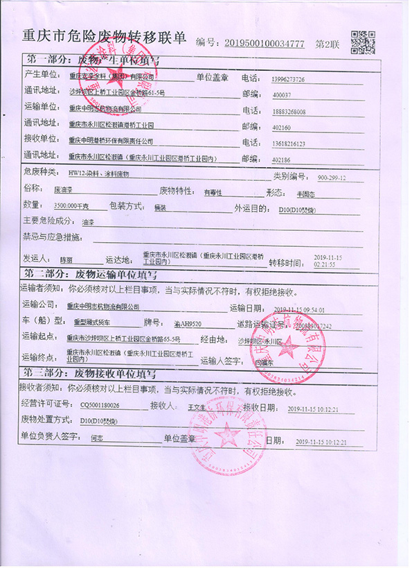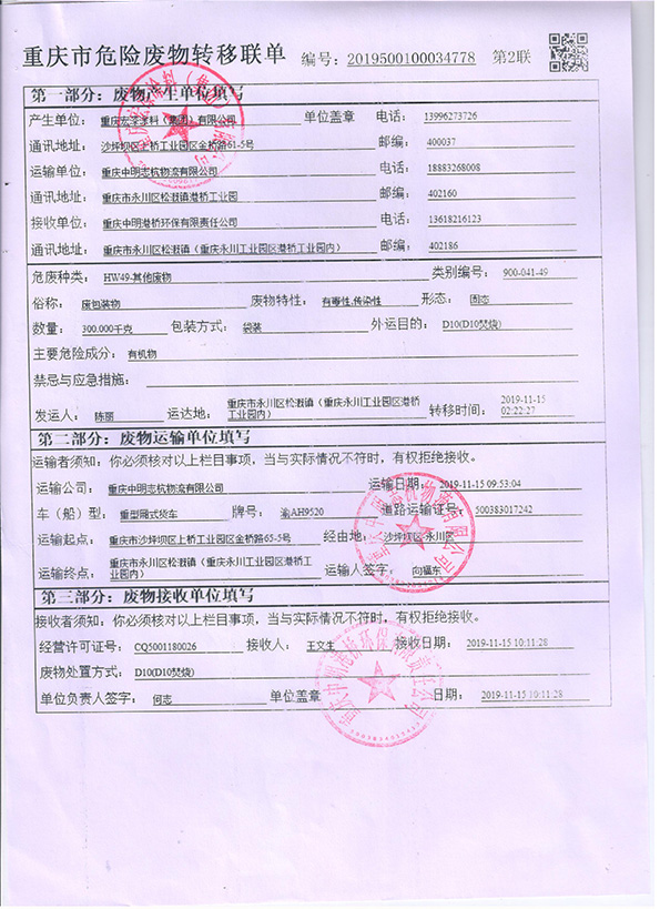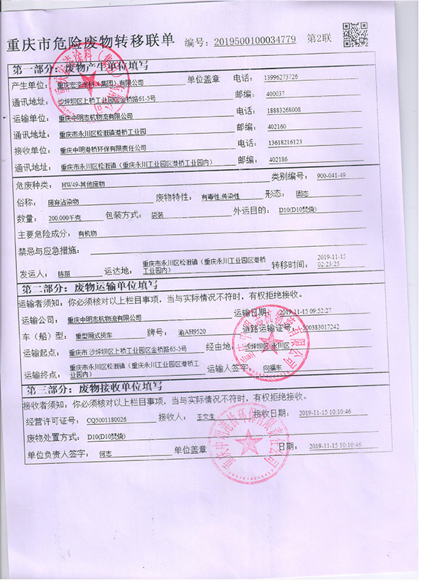 已于2019年 11月 23日 在重庆市沙坪坝区生态环保局进行备案。