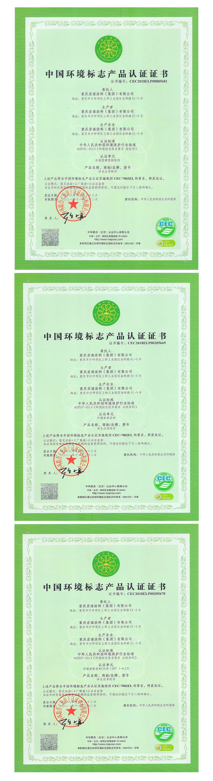 2018年9月,宏漆集团顺利通过环保专家有关生产现场质量环境管理及法律法规遵守审核,现场抽样检测全部合格,于11月23日再次获得“中国环境标志认证”证书。